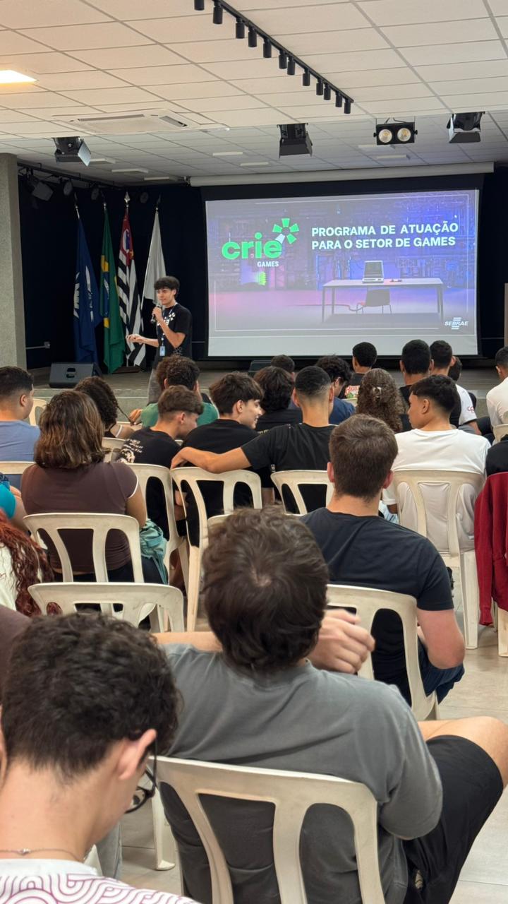 O workshop foi organizado pelo professor Gabriel de Souza Gerolim, em parceria com o Sebrae-SP, e contou com a condução de Vitor e Diogo, que trouxeram uma abordagem prática e dinâmica, incentivando o protagonismo dos alunos e a transformação de ideias em projetos concretos.