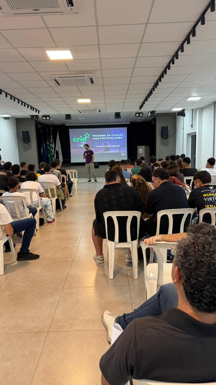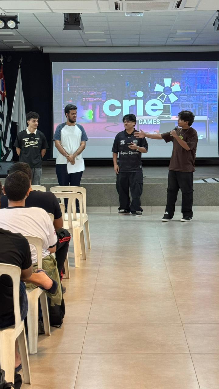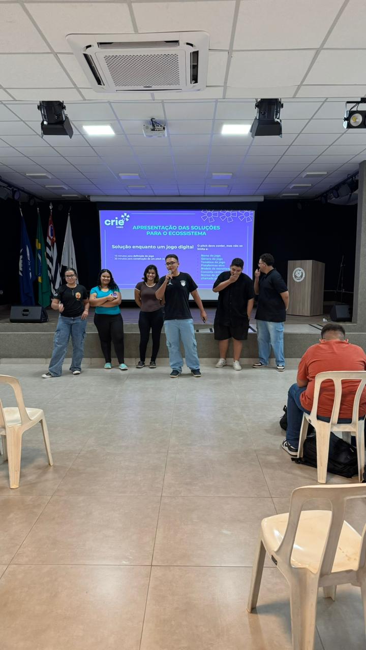 Durante o workshop, os participantes foram desafiados a desenvolver ideias de jogos, aplicando conceitos de criatividade, lógica e trabalho em equipe. Ao final de cada período, os grupos apresentaram seus projetos, demonstrando soluções inovadoras e grande potencial de desenvolvimento.